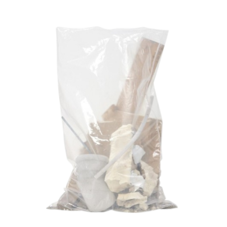 Sacco trasparente in polietilene ad alta resistenza, ideale per macerie e materiali pesanti in ambito edilizio e industriale.