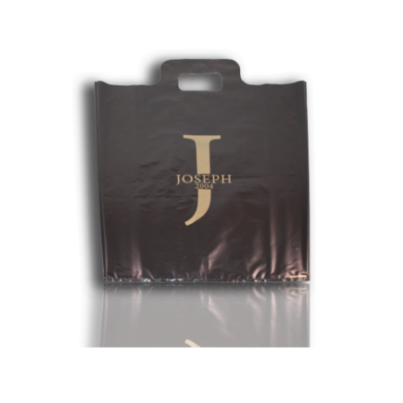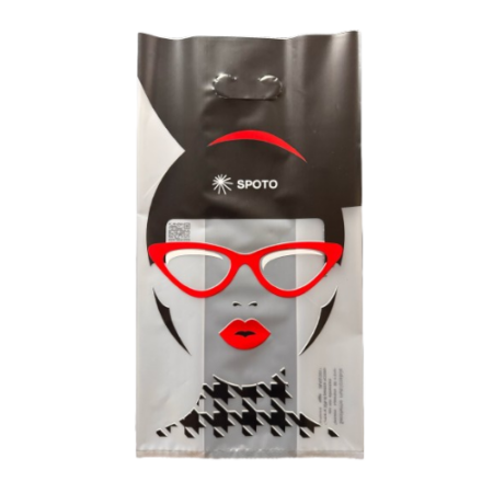 Busta in PE/HDPE con manico a fagiolo, personalizzabile, pratica e robusta per negozi e boutique.